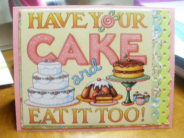I got these "Have Your Cake and Eat It Too" birthday invitations in a Michael's clearance bin several years ago, and never used. I figured, why not use it with some OWH cards, and put it with some coordinating colored cardstock?